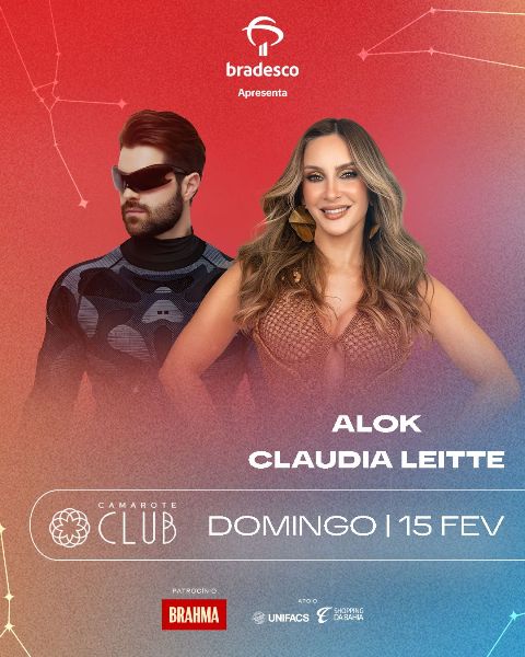 Além de Claudia Leitte e Alok, o Camarote Club receberá também Henry Freitas, Natanzinho Lima e Felipe Amorim (quinta-feira), Wesley Safadão e Menos É Mais (sexta-feira), a dupla Matheus & Kauan e o som percussivo da Timbalada (sábado), o pagode contagiante de Xanddy Harmonia, o balanssu da Filhos de Jorge e o romantismo de Thiaguinho (segunda-feira) e, encerrando a folia, na terça-feira GG Léo Santana, Sorriso Maroto e Alexandre Peixe com o projeto Axézin.