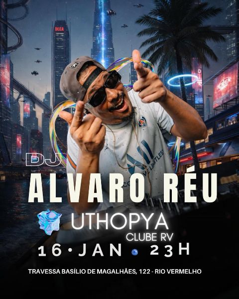Na sexta-feira (16/01), a partir das 23h, a pista do Uthopya – Clube RV fica sob o comando de DJ Álvaro Réu, artista que construiu uma trajetória sólida a partir do hip hop e hoje é um dos nomes mais requisitados da cena baiana. Nascido no subúrbio ferroviário de Salvador, Álvaro iniciou sua caminhada na música em 2008 como rapper, ganhou destaque nas batalhas de MC, venceu o Prêmio Hip Hop da Funarte e, ao longo dos anos, ampliou sua atuação como DJ e produtor. Criador da festa Bailaum, que completa sete anos e se tornou referência na cidade, ele comanda a noite misturando clássicos, hits urbanos e a pulsação do hip hop, com sets que conectam diferentes gerações e mantêm a pista em constante movimento.