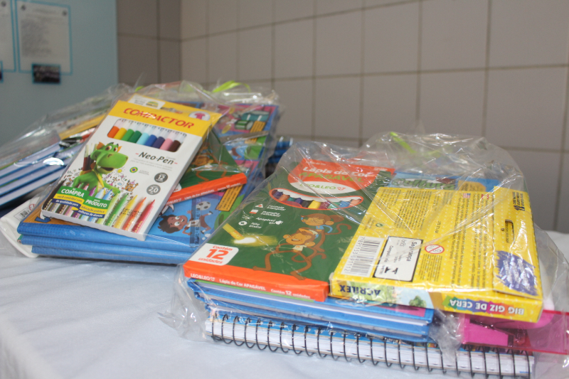 O kit escolar é composto por cadernos de brochura para os alunos da Educação Infantil; de desenho, caderno de 12 matérias para alunos do Fundamental II e todos eles com capa dura, apontador, borracha, caneta, cola, hidrocor, lápis de cor, régua, tesoura, giz cera, entre outros. Também são inclusos fardamento, tênis e kit de saúde bucal. A entrega do material é feita no início das aulas e no segundo semestre é feita uma nova entrega.