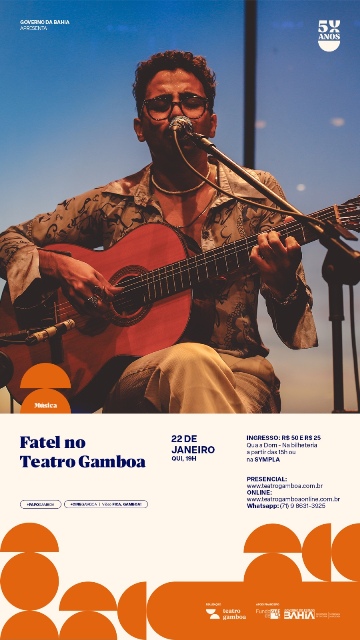 Nesta quinta-feira (22), às 19h, o artista baiano FATEL sobe ao palco do Teatro Gamboa para apresentar um show que propõe uma experiência imersiva de troca e fruição entre público e artista. A apresentação reúne canções autorais, inéditas e já lançadas, além de releituras de compositores que são referência em sua trajetória.