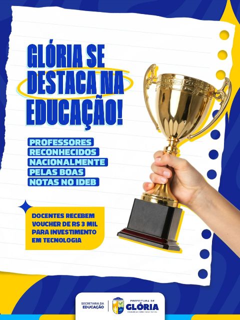 A Prefeitura de Glória, por meio da Secretaria Municipal de Educação, parabeniza todos os professores contemplados, destacando que essa conquista é resultado do empenho coletivo e do compromisso com uma educação pública cada vez melhor.