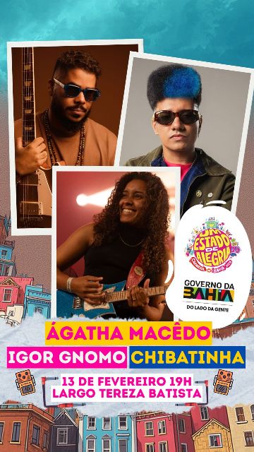 Na sexta-feira (13/02), Igor Gnomo se apresentará no carnaval de Salvador, integrando a programação do Pelourinho realizada pelo governo do estado da Bahia. Ao lado de Igor Gnomo, sobe ao palco a guitarrista Ágatha Macedo, formada pela Escola de Música Irmãos Macêdo (EMIM) e pelo NEOJIBA, referência da nova geração da guitarra instrumental baiana e integrante da banda BaianaSystem. Completa o trio Chibatinha, guitarrista da banda ATTOOOXXÁ, conhecido pelo groove marcante e pela inovação sonora, com colaborações com artistas como Carlinhos Brown, Liniker e Thiaguinho, além de produções premiadas nacionalmente. O show acontece no largo Tereza Batista ás 19h, gratuito e com classificação livre.