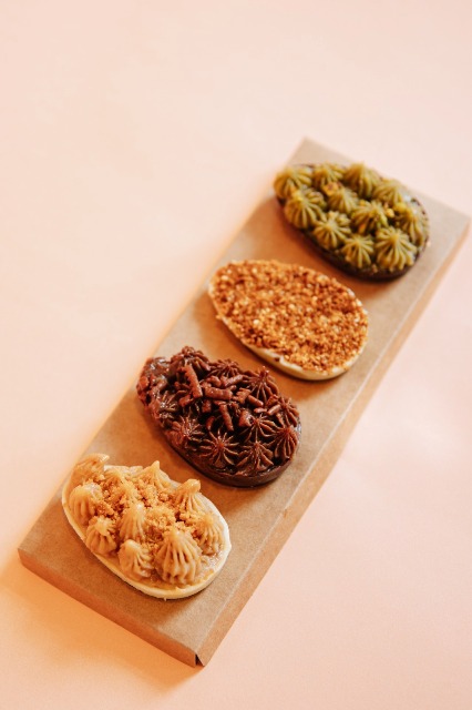 Para a temporada, a Crema estruturou um catálogo específico com ovo trufado de chocolate 70% cacau (R$126), ovos de colher nos sabores pistache, brigadeiro e Lótus (R$98) e um kit degustação (R$72) composto por quatro miniaturas nos sabores pistache, coco queimado, brigadeiro e Lótus. A proposta do kit é permitir que o consumidor experimente diferentes versões em porções menores, mantendo a mesma receita das versões tradicionais.