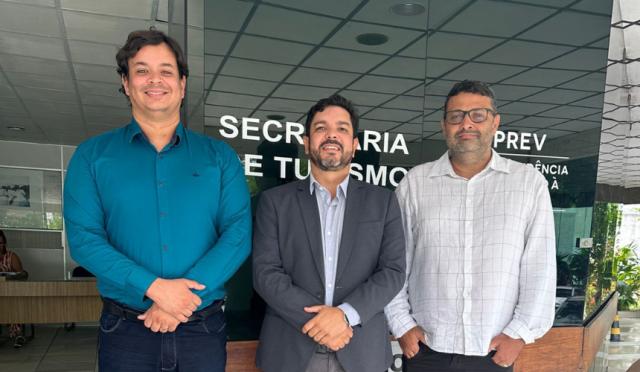 Em mais um passo decisivo para reposicionar Paulo Afonso no mapa do turismo regional, a Secretaria Municipal de Turismo, Indústria e Comércio (SETIC) intensifica articulações institucionais para viabilizar novos investimentos no setor. O secretário municipal, Emerson Leandro, acompanhado dos superintendentes da SETIC, Anderson Barros e Thiago Bryto, esteve na Secretaria de Turismo do Estado da Bahia, em reunião com Lucia Bichara – coordenadora de interiorização do turismo, Jussara Caires – engenharia da Setur Bahia e com o Deputado Federal João Carlos Bacelar (PV-BA), para tratar de projetos estratégicos voltados ao fortalecimento da atividade turística no município.