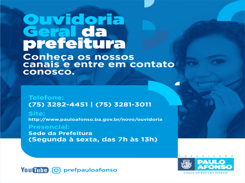 A qualidade dos serviços prestados pela Prefeitura de Paulo Afonso se aperfeiçoa com a atuação da Ouvidoria Municipal, uma vez que ela auxilia na identificação de pontos a serem aprimorados e contribui para a melhoria dos procedimentos e dos processos administrativos.