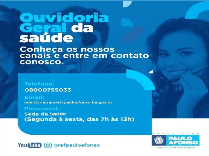 Para entrar em contato com a Ouvidoria Municipal, o cidadão pode comparecer à sede, localizada na Prefeitura, ou registrar sua manifestação na Ouvidoria Eletrônica, por meio do site institucional www.pauloafonso.ba.gov.br. A Ouvidoria Eletrônica funciona 24h e permite o registro de manifestação e acompanhamento do trâmite. Não é necessário realizar cadastro, manifestações anônimas são permitidas. Após o envio da mensagem um número de protocolo será gerado, permitindo o acompanhamento.