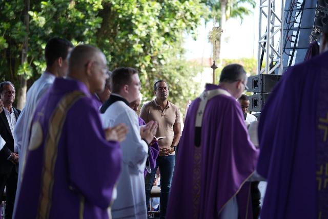 Bruno Reis participou da missa campal em frente à Basílica de Nossa Senhora da Conceição da Praia. A celebração teve início pouco antes das 7h, sendo presidida pelo Arcebispo de São Salvador da Bahia, Primaz do Brasil, Cardeal Dom Sérgio da Rocha. O chefe do Executivo municipal assistiu à celebração ao lado da primeira-dama, Rebeca Cardoso, de vereadores e de secretários da gestão.