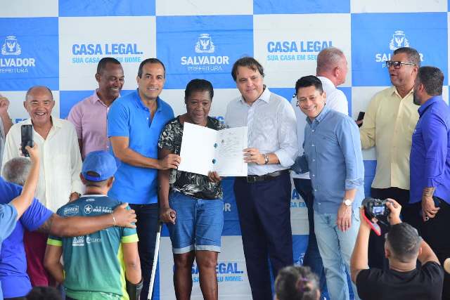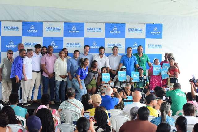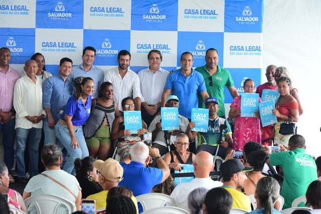 A Prefeitura de Salvador entregou nesta quinta-feira (29) mais 4.978 títulos de propriedade, pelo programa de regularização fundiária Casa Legal, na localidade do Bate Coração, em Paripe. Participaram da solenidade o prefeito Bruno Reis, o secretário municipal de Infraestrutura, Luiz Carlos de Souza, e o desembargador Roberto Maynard Frank, do Tribunal de Justiça da Bahia (TJ-BA), entre outras autoridades.